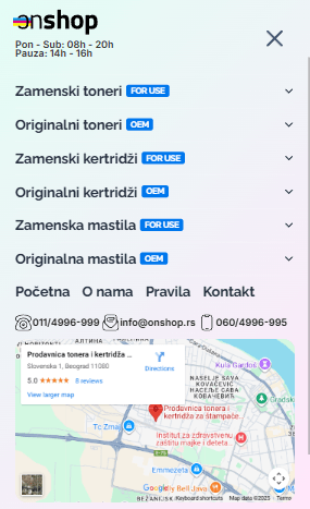 Sajt je u potpunosti responsive i prilagođen svim tipovima ekrana. Na mobilnim uređajima, navigacija je dodatno pojednostavljena. Implementiran je dvoslojni popup meni u kojem se, pored standardnih kategorija, nalazi i integrisana Google mapa sa tačnom lokacijom prodavnice. To korisnicima omogućava da odmah vide gde se prodavnica nalazi i lakše odluče između ličnog preuzimanja i dostave. Još jedna praktična funkcionalnost mobilne verzije je fiksno „Pozovi“ dugme na dnu ekrana, koje se prikazuje na svim stranicama osim tokom procesa plaćanja. Na jedan dodir kupac može pozvati prodavnicu, što dodatno povećava pristupačnost i poverenje.